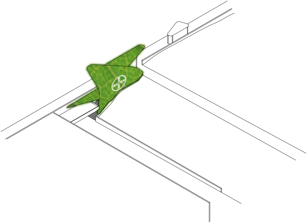 The design evolved from concepts of ecology, sustainability, interactivity, and colors of Bayer. Leaves became the main inspiration as a symbol of ecology, sustainability, and nature, which is reflected in the spatial and material conception of the whole unit. This interplay between nature and architecture is visible from the areal view or from West on the composition of rooftops, where the contours are reminiscent of an emerging flower or leaf bud.