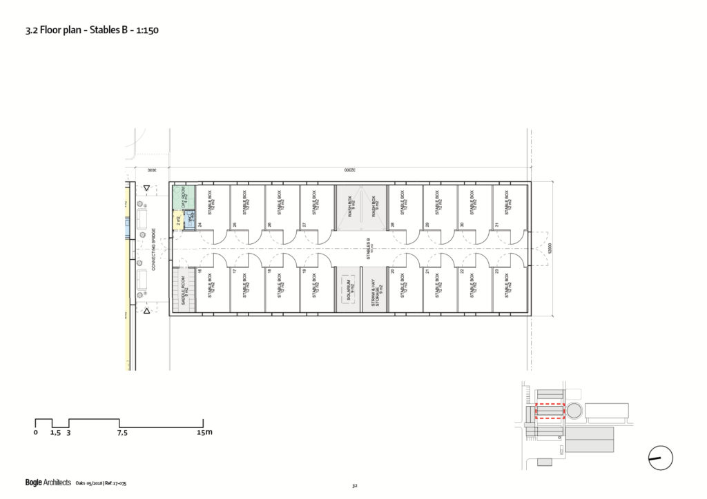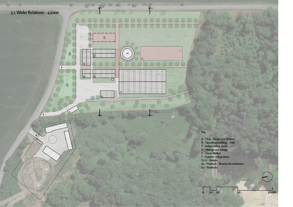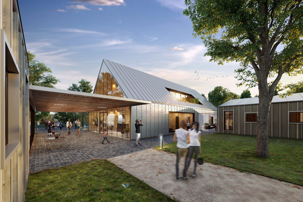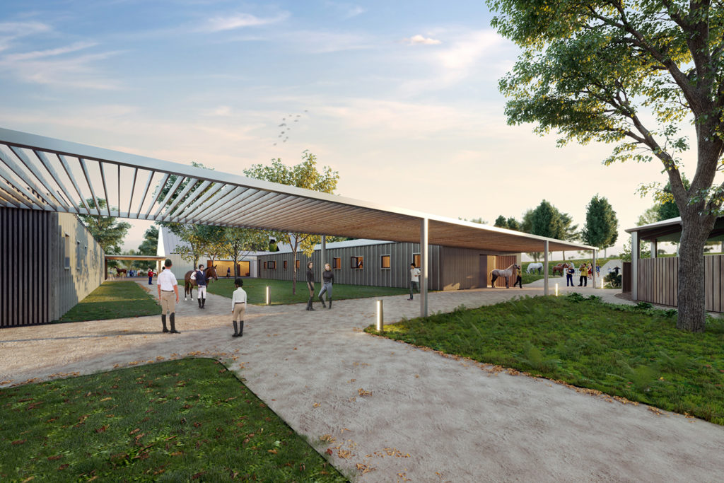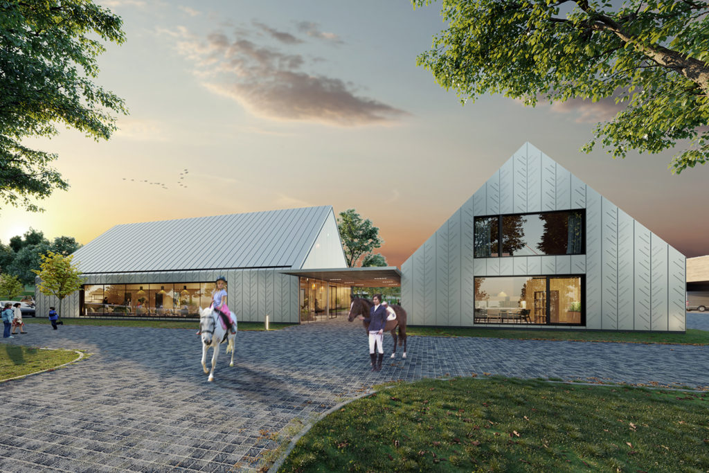 In order to preserve the rural character, we designed the project as a group of directly or indirectly connected buildings with simple gable roofs where each building houses its particular functions and with a modern take on details, and material usage with a clear distinction between human-centered and horse-centered functions.