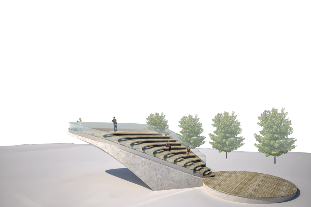 Materiality is about purity. High-performance concrete, where the components of the mixture and the final adjustment of the surface control the aesthetic and structural features. Steel, a material that is closely bonded with concrete by its use as reinforcement in the form of bars, ropes, or cables. There is no doubt that stainless steel is the purest and most elegant version of steel in its appearance. Wood, a material that has its connection with concrete mainly because of its use as a form-work. All these materials, all pure and smooth, emphasize by their essence the elegance of the proposed observation platform.